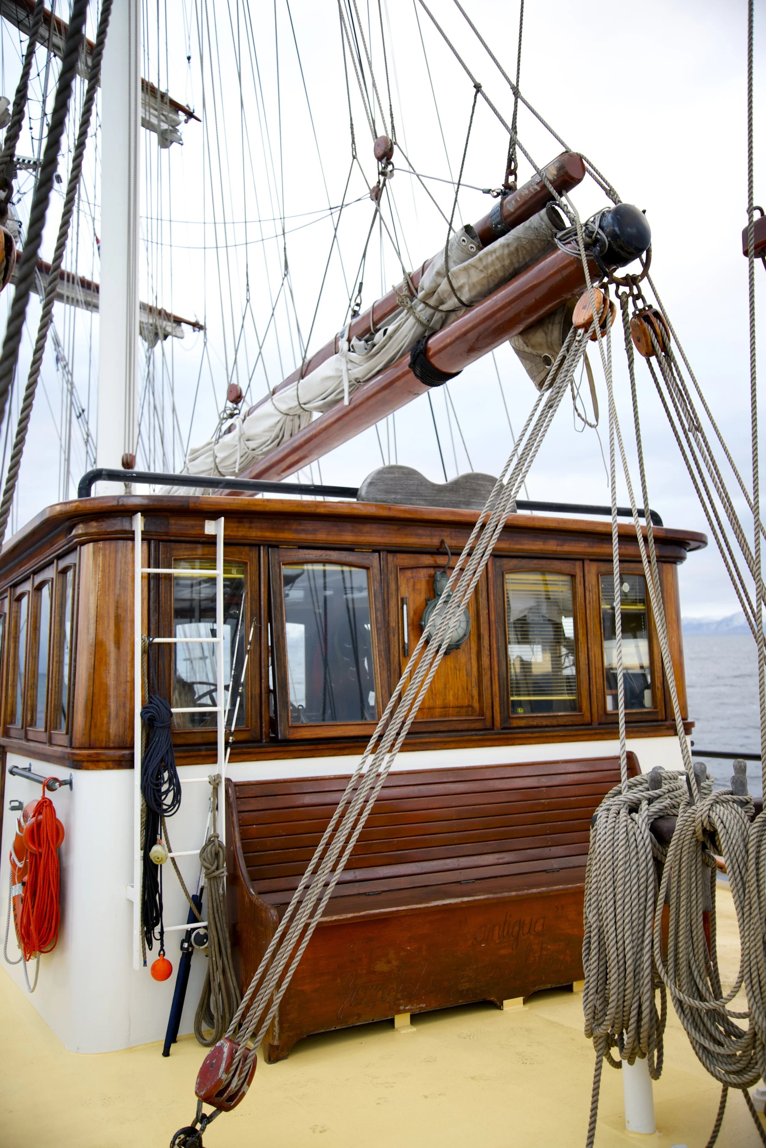 A few hours later, after a visit to the post office to provide the greater world evidence that I was actually here, we lugged our luggage (Huh. So that's why it's called "luggage"...) and equipment back outside and boarded the bus to the harbor. The harbor. The Antigua. A barquentine tallship, indeed tall, and draped with an ordered web of ropes cascading gracefully from its masts and ballasts, landing in coils on its smoothly weathered deck. That dignified ship. That backdrop of sea, the way it ended in abruptly rising ridges. That air, how it blew off the salty water and swathed everything in its trajectory. All of it, in that moment. Just that moment.