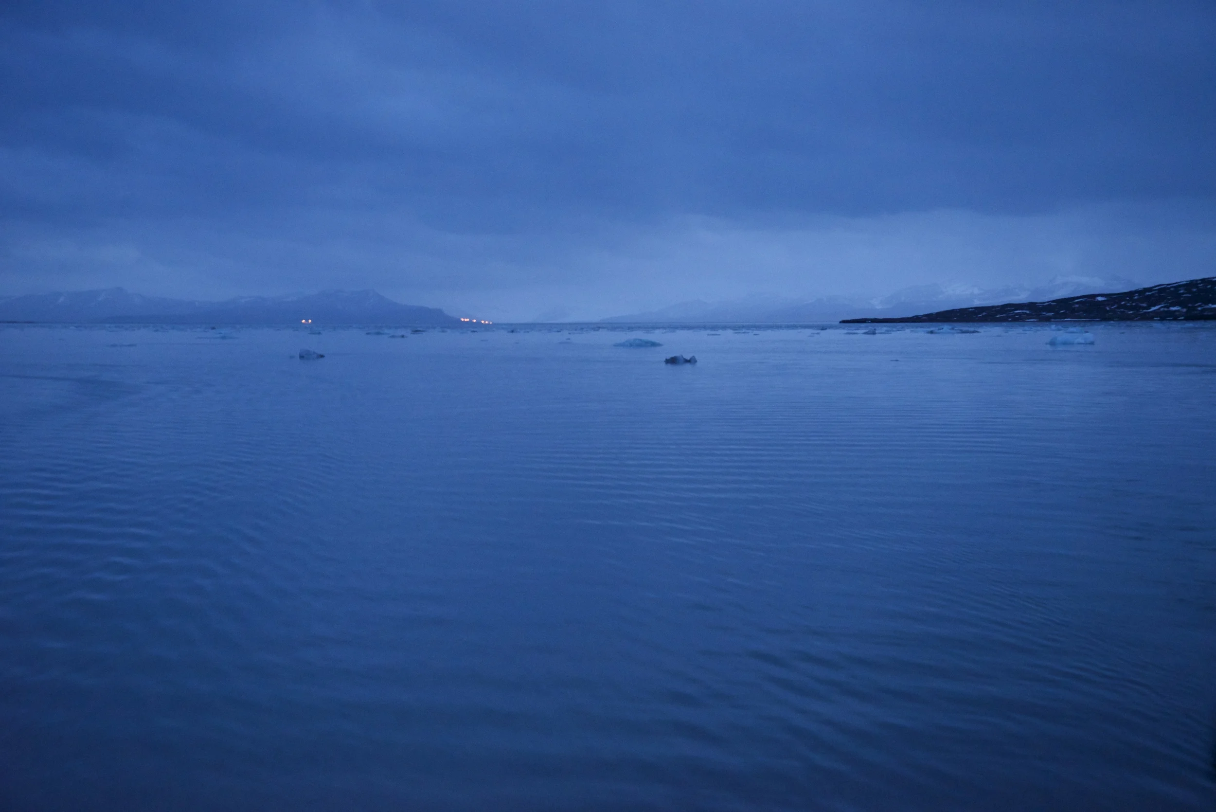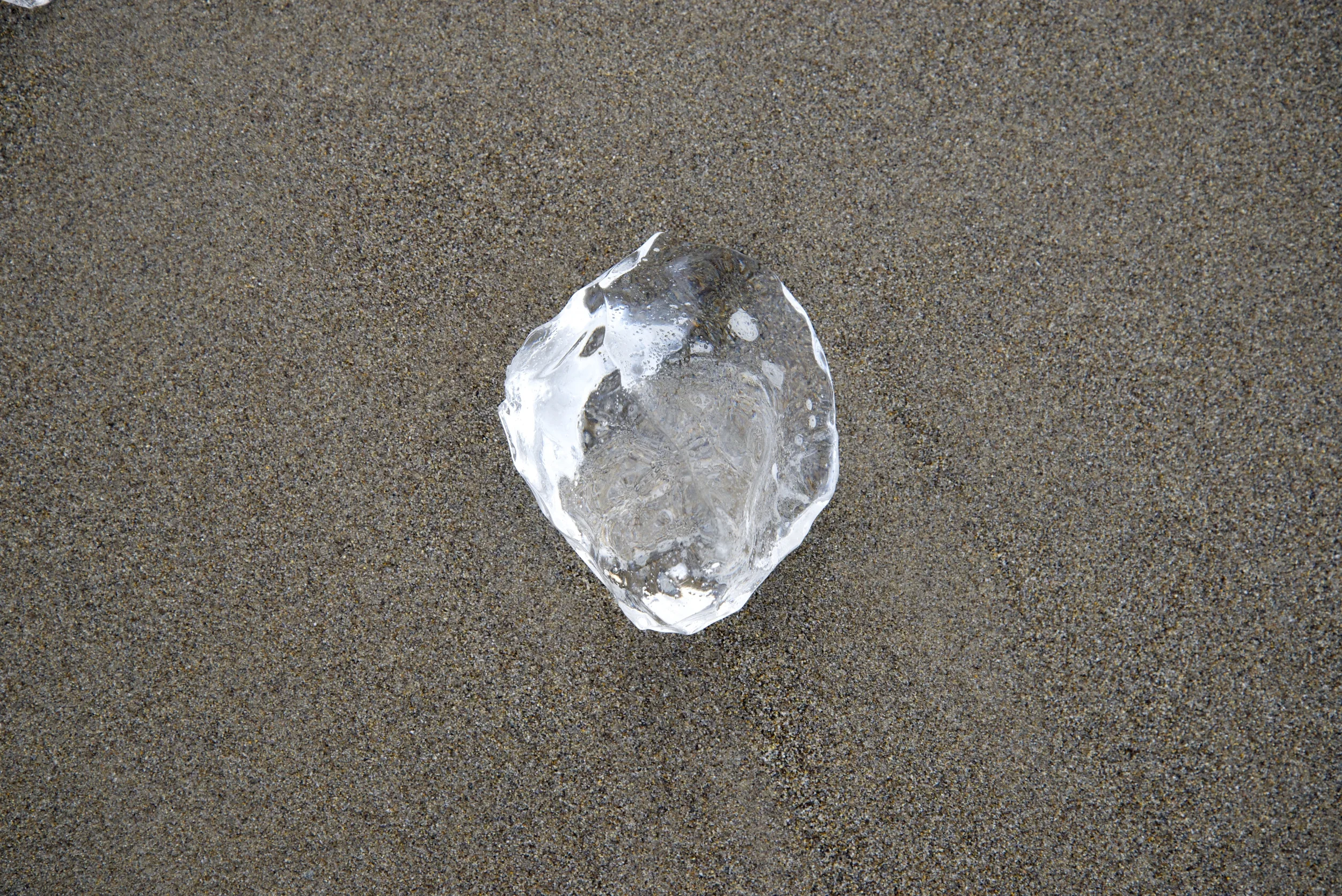 Second landfall. A sweeping peninsula rimmed with beach, flanked by indescribable blue and contained by high moraine arms reaching out in an embrace from a dignified glacier-body. Glacier babies everywhere—cracking, tumbling, splashing, floating, and finally beached. No need to make "art"—they already are.