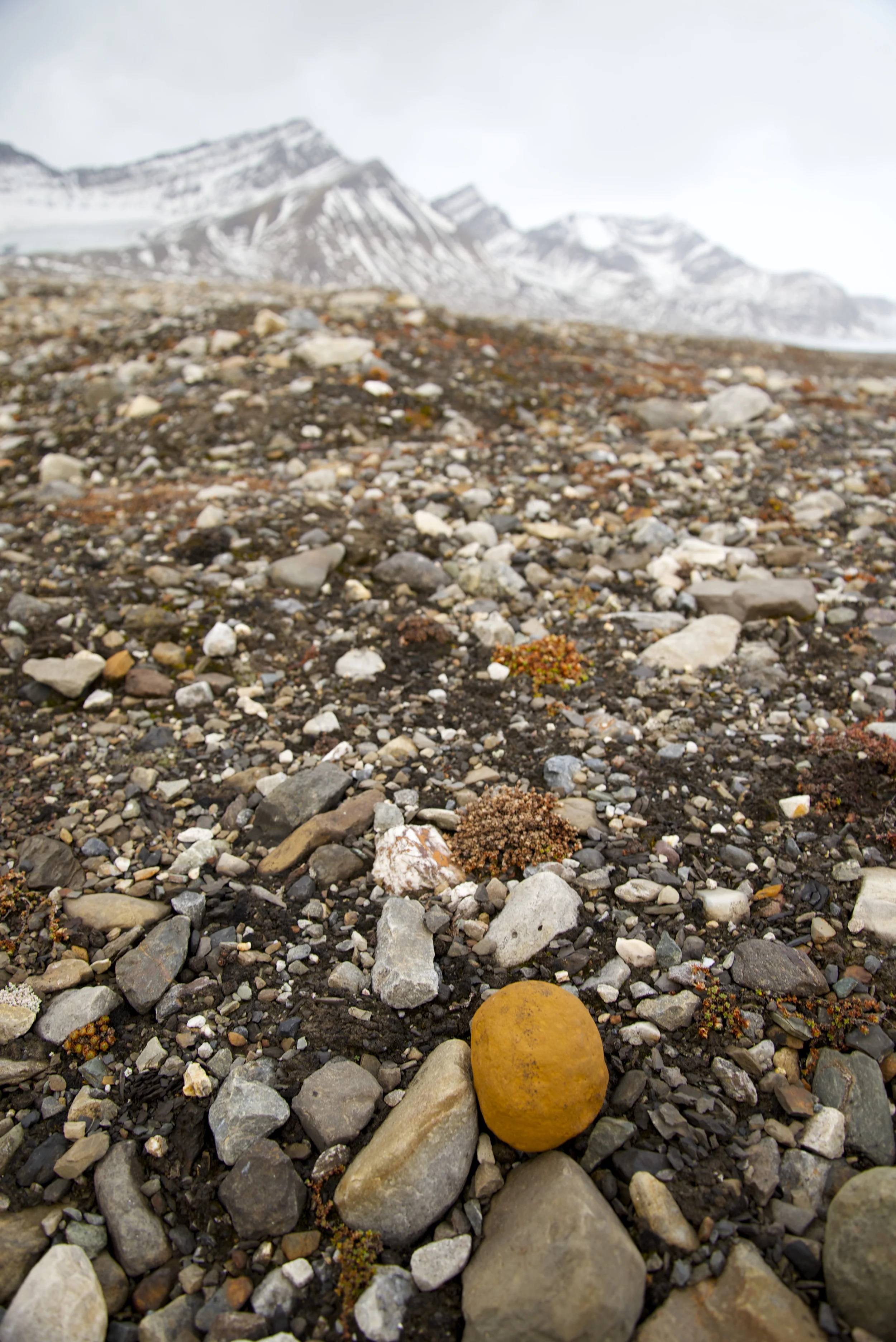 It was our first landfall. The Zodiacs brought us to a pebbled beach, where a trifecta of guides stood facing out with rifles, creating a triangle with its longest side about a 200 meter stretch along the beach: the Safe Zone, whose imaginary lines we were not to cross at the risk of Polar Bear attack. It's incredible, the things that make their home here, from such ominous (but deceptively cute) ice beasts to the tiny yellow flowers pushing up through the frozen ground. I studied the earth carefully, macro to micro, milling around this little triangle with 26 other artists. We were all looking at the same things, but we would all see them differently.