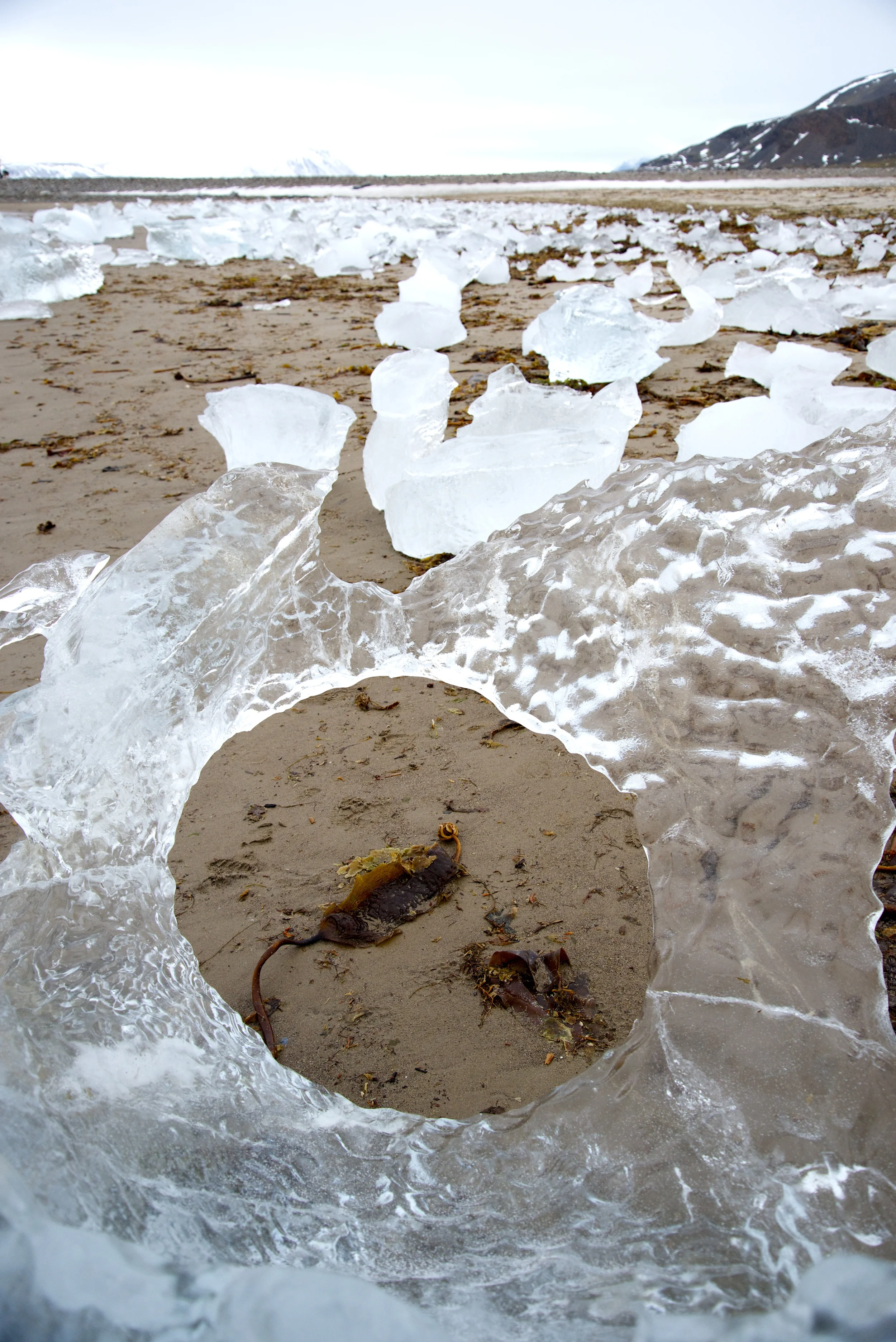 We sailed all morning, providing a little time to get my hands dirty with actual projects. It was nice to have a break from the perpetual photo-snapping and feeling like I'm always missing an image. In the afternoon, we landed on an old whaling beach where the sea was heavy-laden with ice freshly calved from Waggonwaybreen at the end of the fjord. I'm still not used to the incongruous sight of ice on sand.