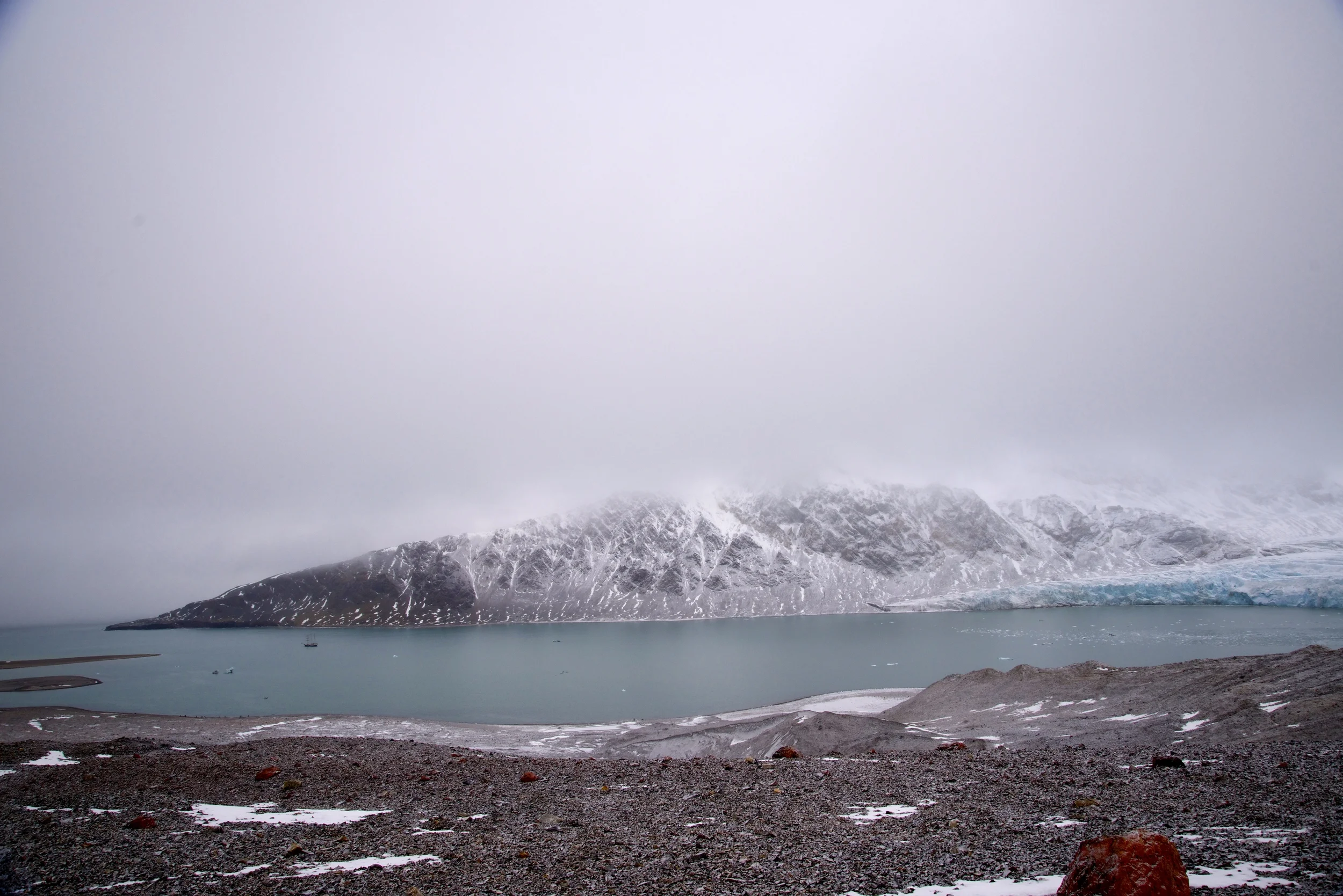 The sea this morning was not the same glassy surface on which we were gently rocked to sleep. A strong southerly wind had forced us to raise anchor and move in the night, and I was all but tossed out of my top bunk when my cabinmate's alarm sounded at 7:20. It was still dark on deck, and actively gesticulating, but I was alone for the first time in two days, watching the face of Esmarkbreen illuminate slowly. I might have also taken the opportunity to do some squats, lunges, push-ups and sit-ups. Going on six days without riding my bike and my trousers are already tighter...