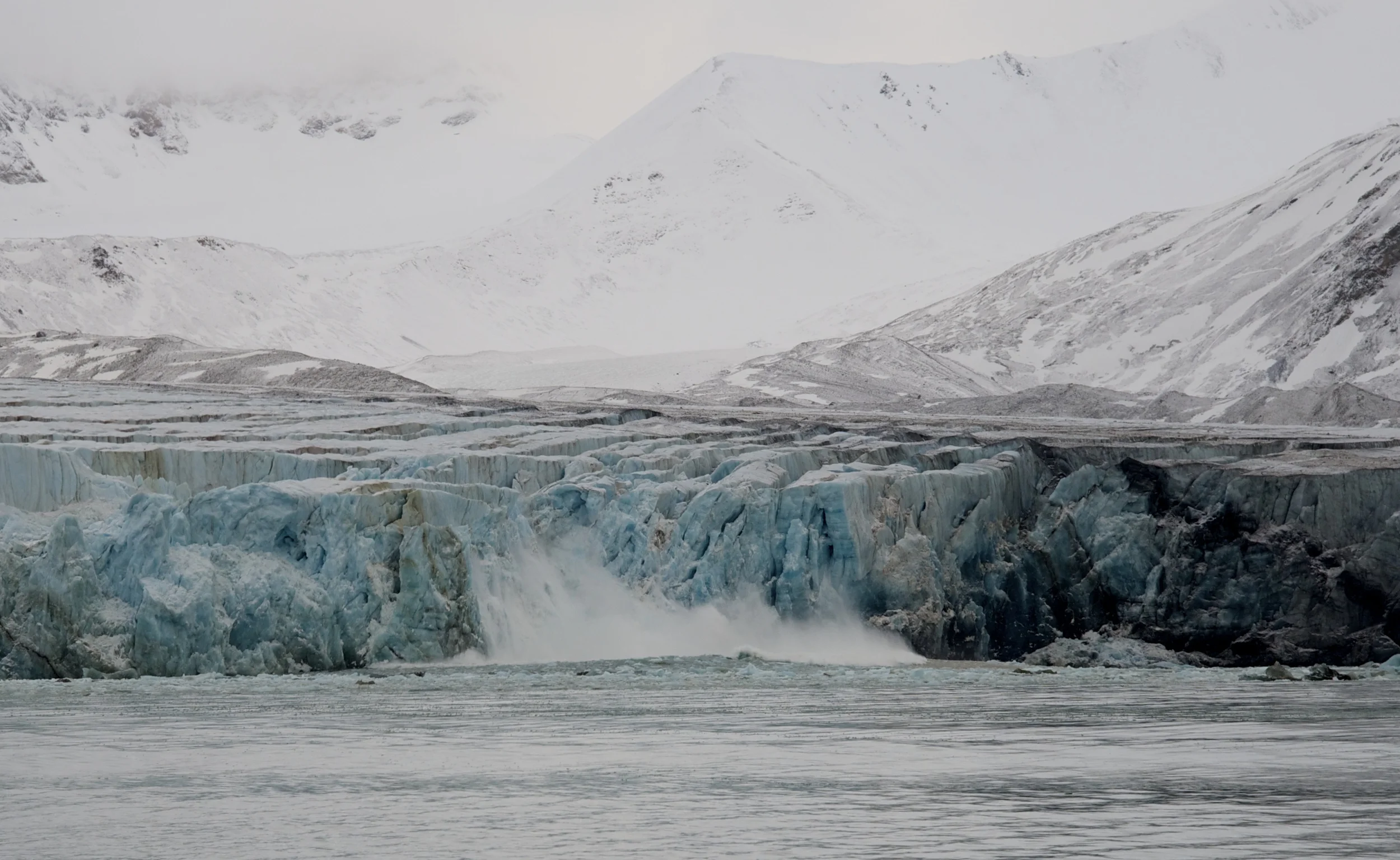 After a calving glacier comes a "tsunami"--a wave that is the result of the giant ripples made by mammoth chunks of ice toppling into the sea.