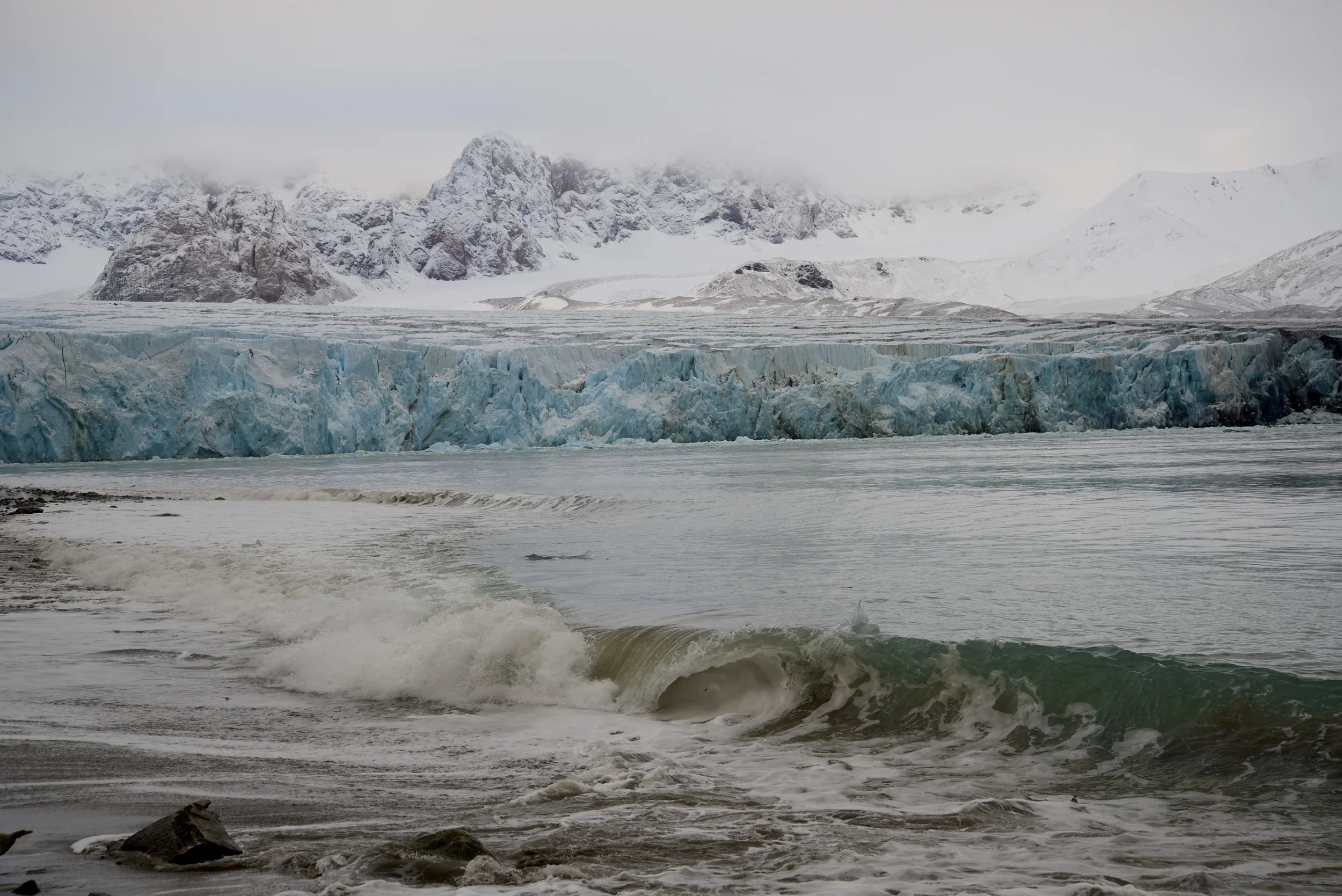 Leaving Isfjorden, there is an inconsistency in the sea floor that creates a perpetual wave